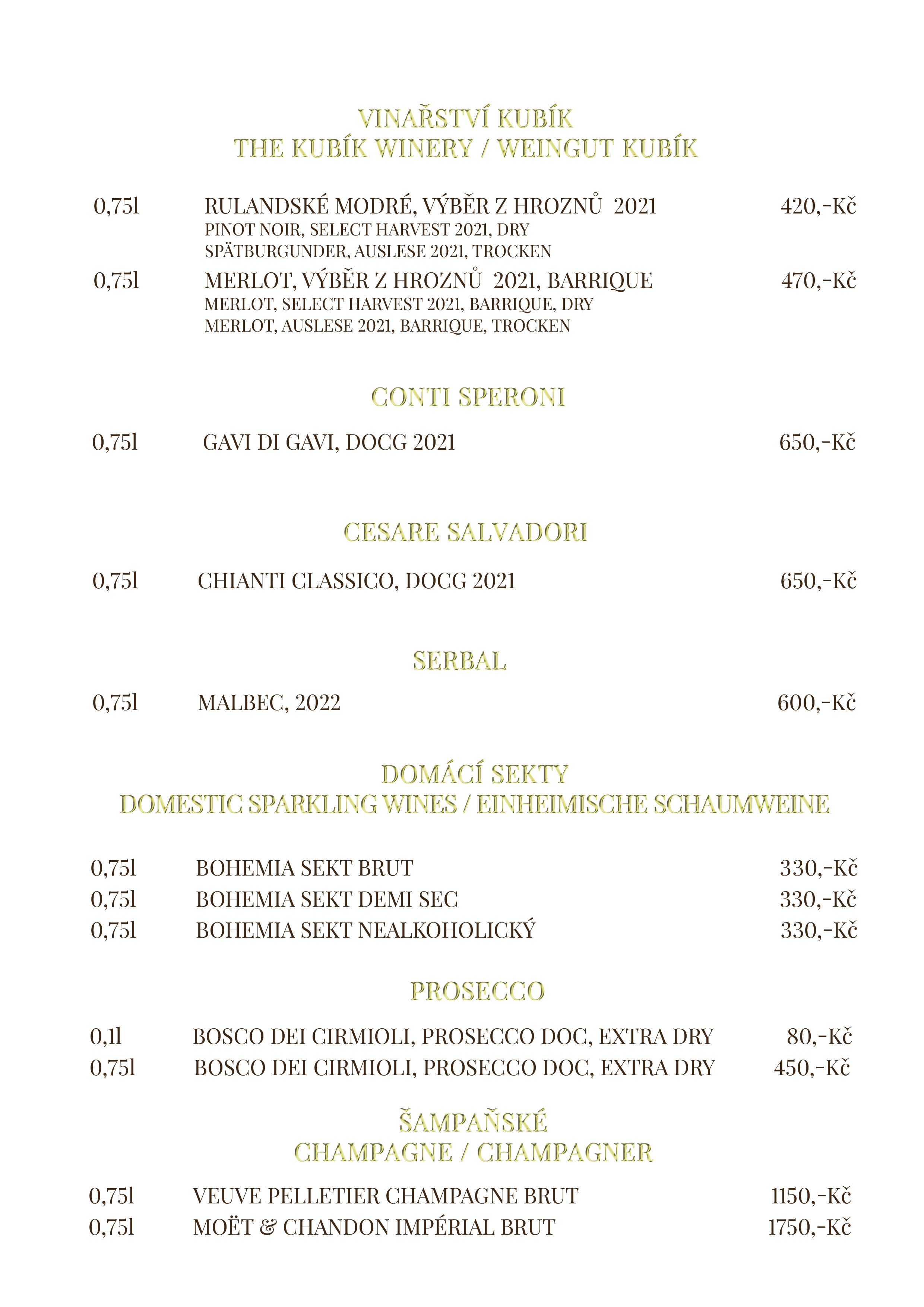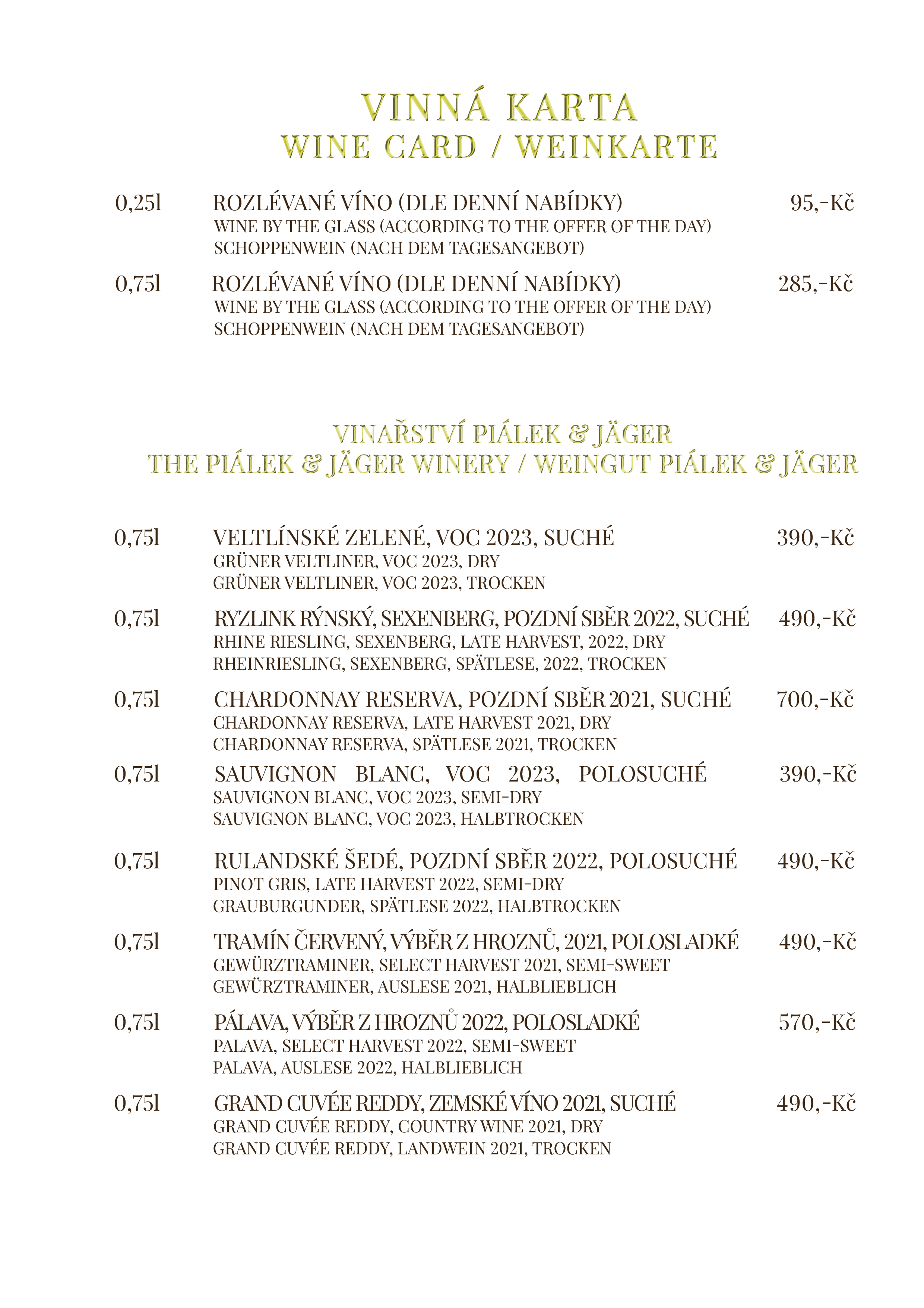 Vinný lístek restaurace